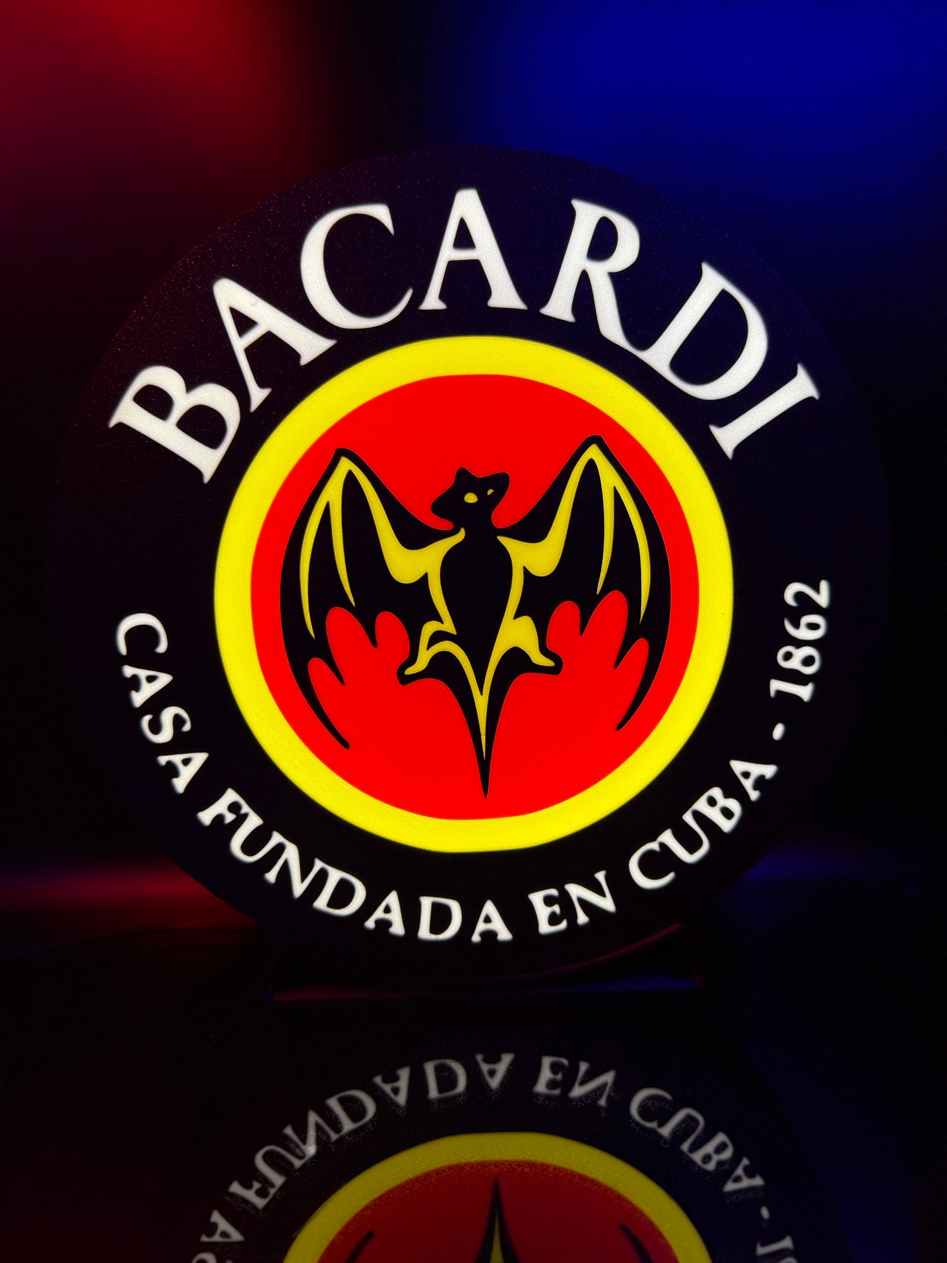 Bring a touch of iconic nightlife to your space with this **3D Printed Bacardi Logo Lightbox Sign**. Perfect for home bars, man caves, or party rooms, this illuminated sign celebrates the world-famous bat logo with bold, vibrant detail.