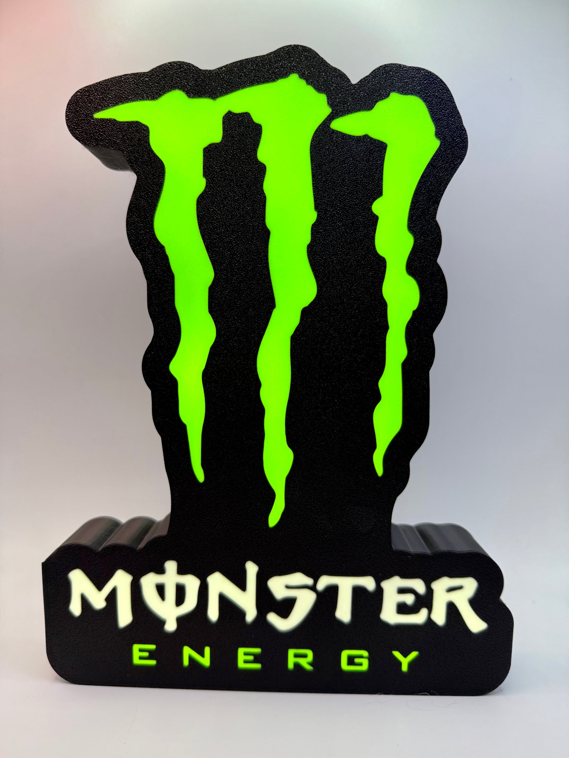 Bring the energy to your space with this **3D Printed Monster Energy Logo Lightbox Sign**—a bold statement piece designed for fans of the iconic brand.