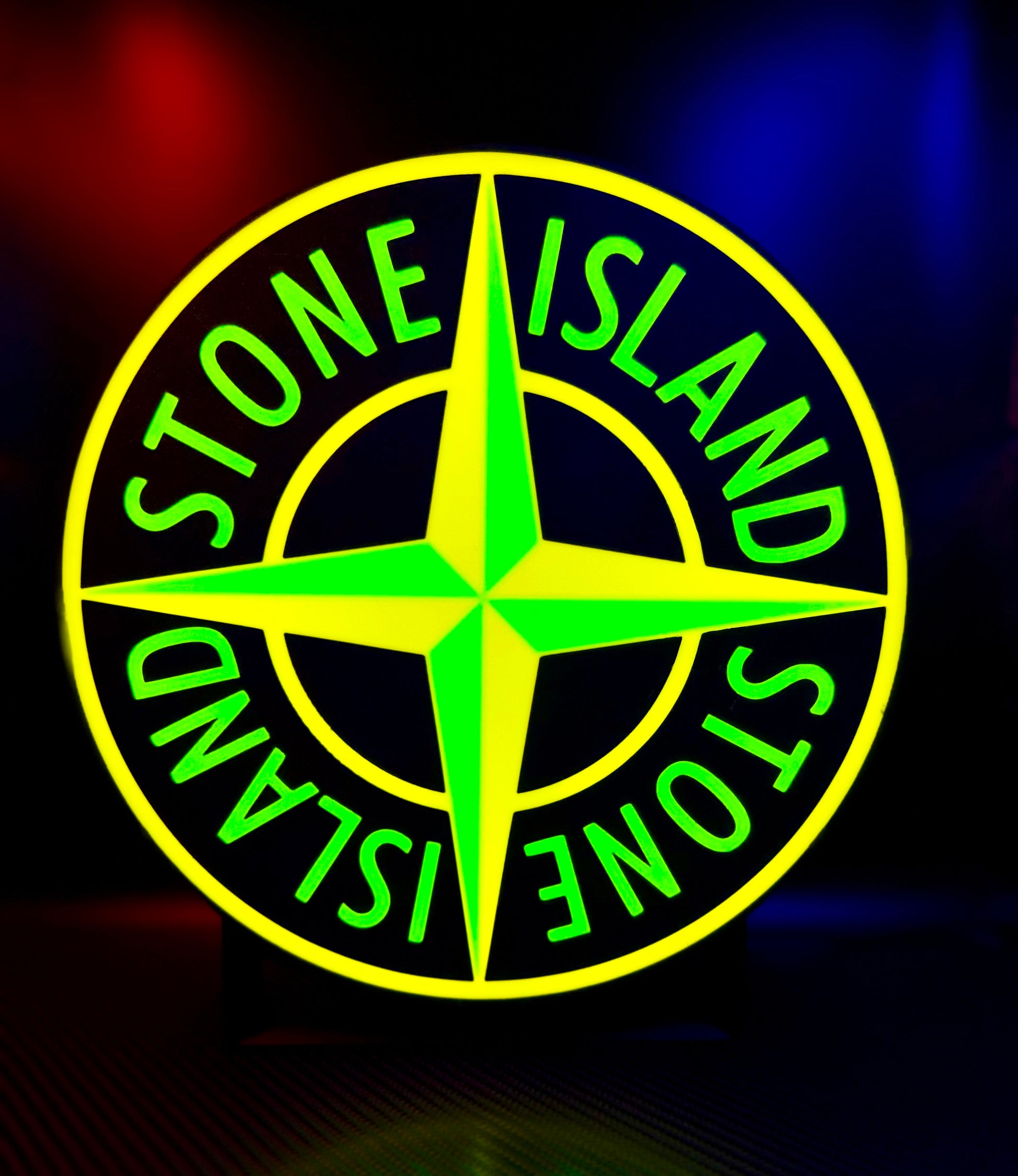 Bring the essence of Stone Island into your room with this custom illuminated lightbox sign.